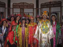 午後7時に、フエ到着。飛行場から宮廷料理が出るレストランへバスで移動。そのレストランがいかにも観光客が連れてこられるようなレストランで、宮廷にふさわしい衣装を着せられ、ベトナムの民芸楽器を使った生演奏が鳴り響く大部屋に通され、写真を売りつけられ・・・という、ちょっと勘弁の歓迎を受け、またそこで出されたオシボリが、便所の芳香剤に漬けてあったのではないかと思う香りをはなっていた。
