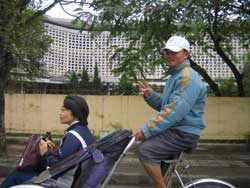 街は人通りが多く、細い路地でさえバイクが通り、ゆっくりスケッチする場所がない。ホテルに戻り、作戦会議の結果「シクロ(人力タクシー)に乗りたい」という松浦さんの声かけで、藤井さんらとホアロー収容所に出かける。